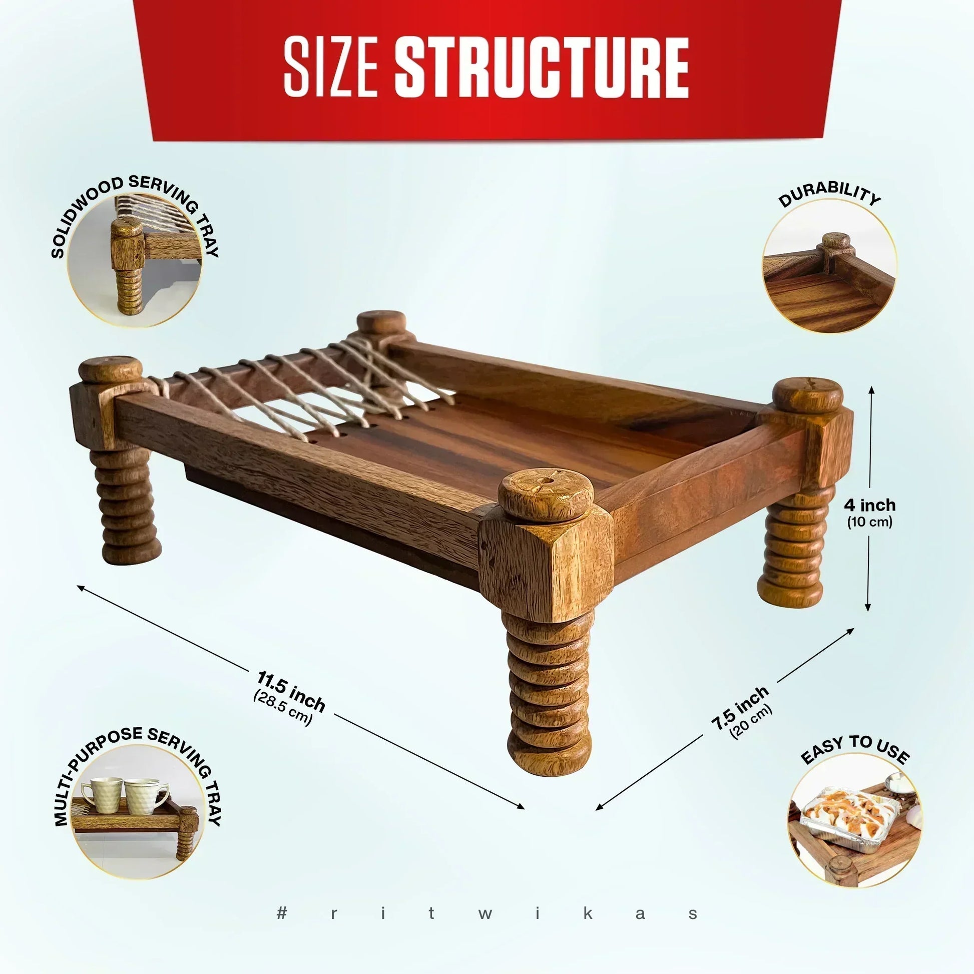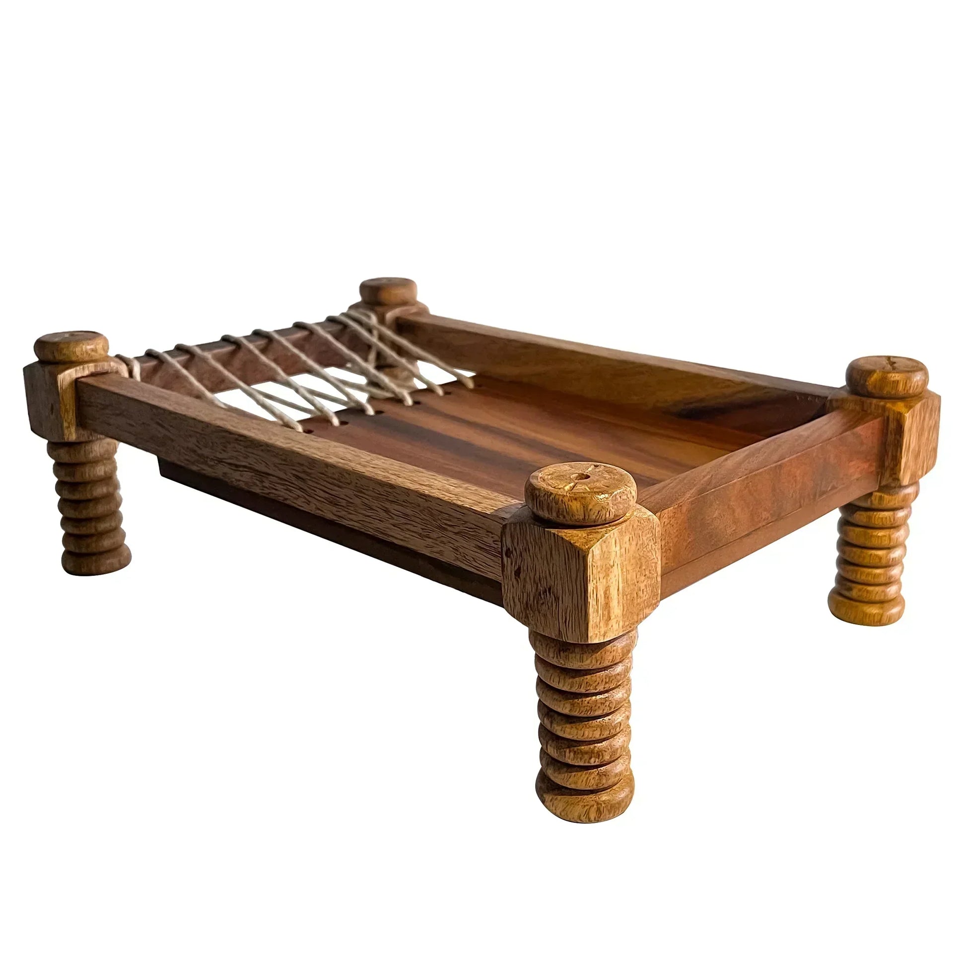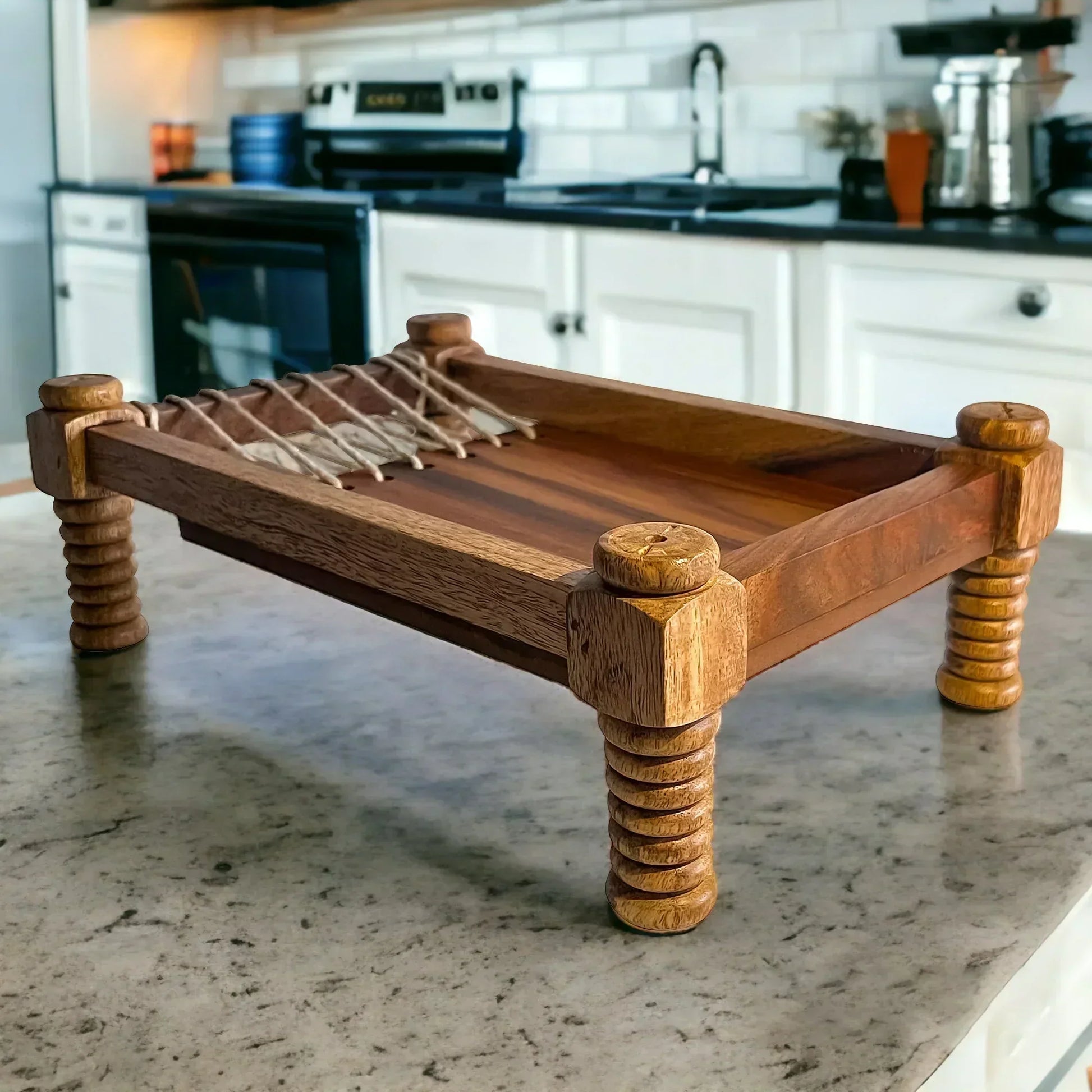 Marwar Khatiya Platter, the Indian Cot or Charpai or Khaat inspired Serving Tray or Platter. Multi-functional Wooden Serving Charpai Tray, great for food, breakfast, dinner, drinks, cake, or any food serving tray. This wooden tray beautifully serve cheese, crackers, meats, cookies, chocolates, bread, and any other appetizer. You can also use it to serve sandwiches, fruits, etc. In addition, you can use it in family activities, parties, offices, etc. Wooden handcrafted indian coat charpai serving tray made from rosewood. everybody will love this eye-catchy kitchenware. perfect gift for house warming, anniversary, Christmas, thanksgiving, valentine's day, birthday, holiday, mother's day, graduation and easter gifts.